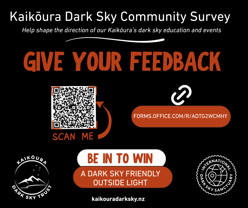 A short survey to support Kaikōura’s dark sky future In September 2024, Kaikōura was officially designated an International Dark Sky Sanctuary, recognising the exceptional quality of our skies and the …